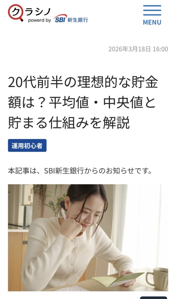 SBI新生銀行の資産運用メディア「クラシノ」にて、執筆記事が掲載されました!